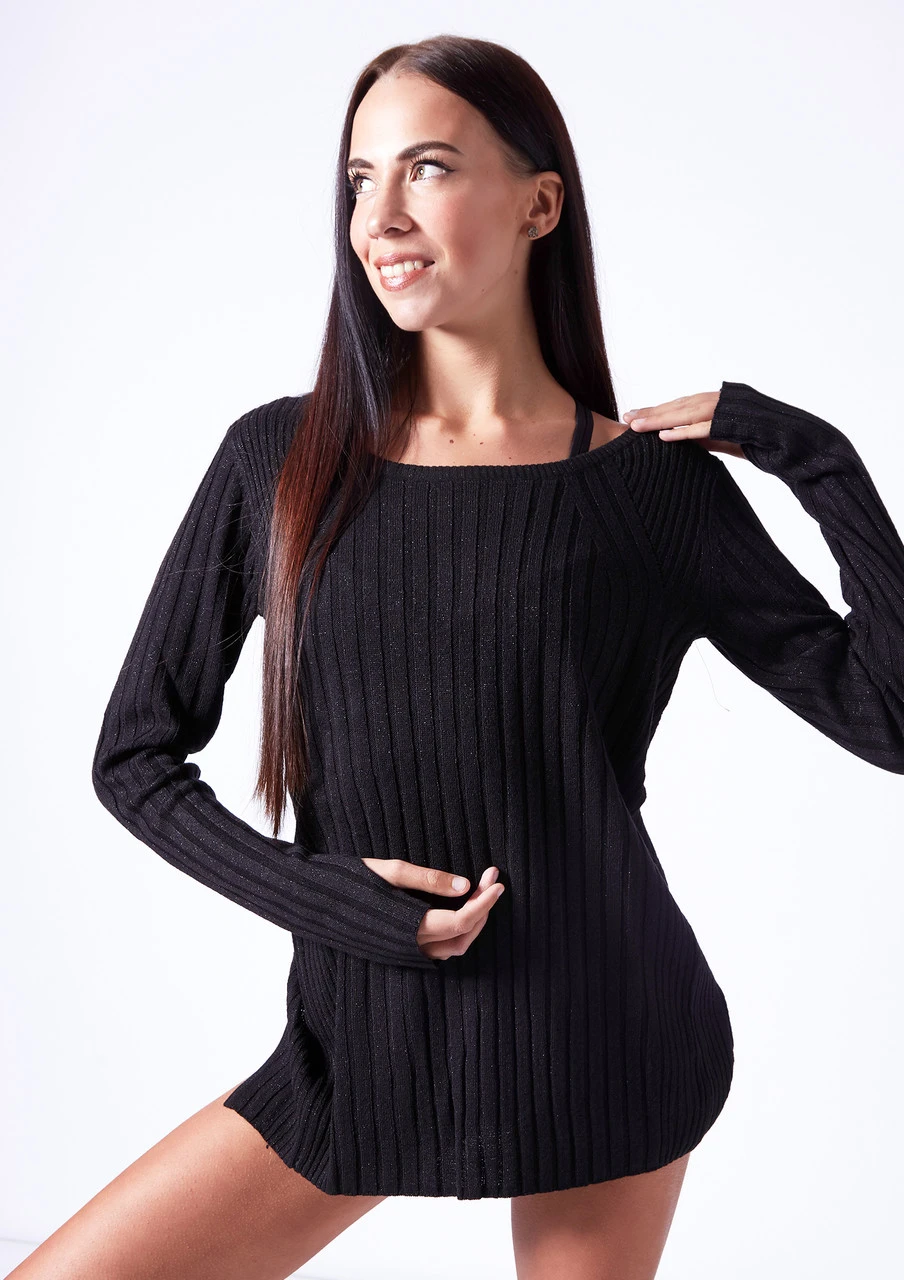 Keep cosy in the Amore jumper. Feautring long sleeves and an open back. Complete with thumbholes. A fab layer to add over your leotard for warm up.