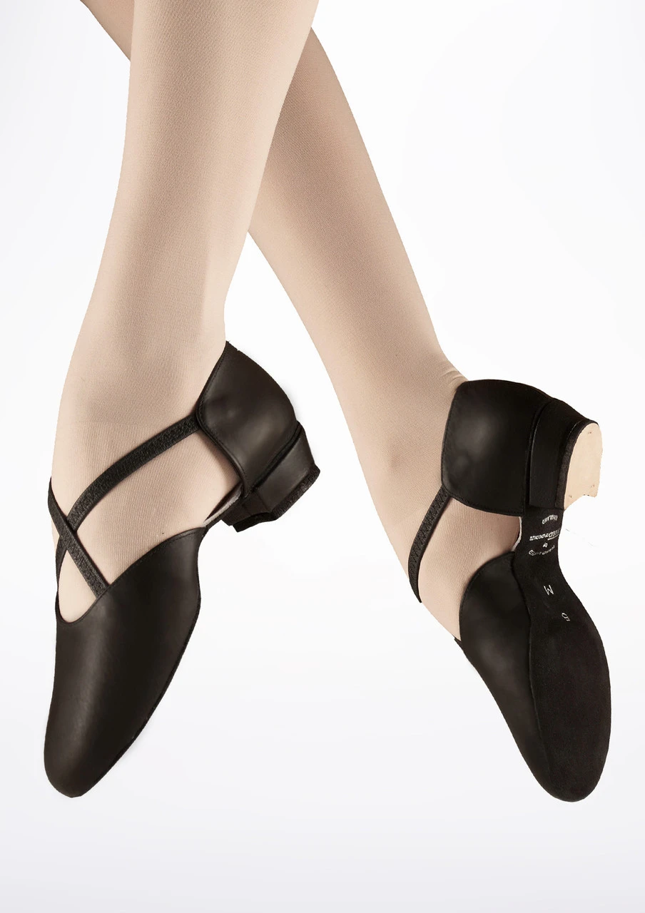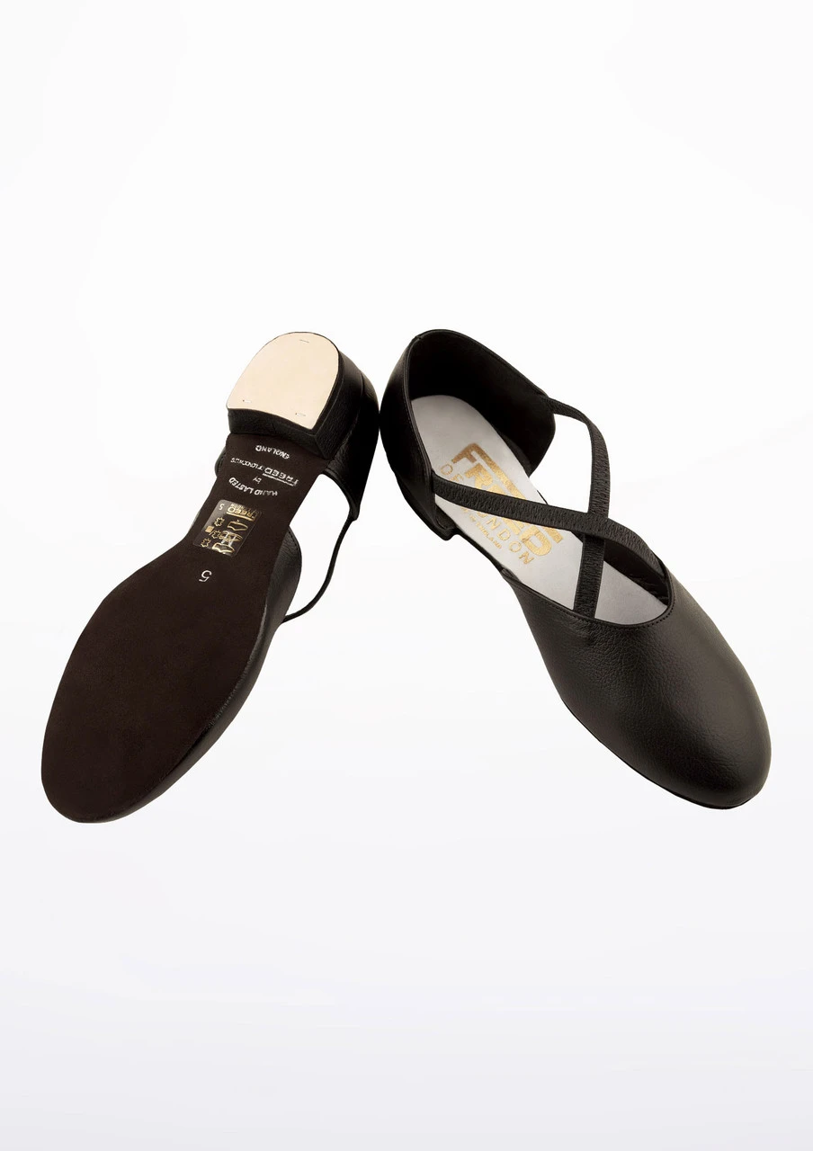 From Freed of London, this teaching shoe has a low block heel for comfort, and a soft leather upper with cross straps.