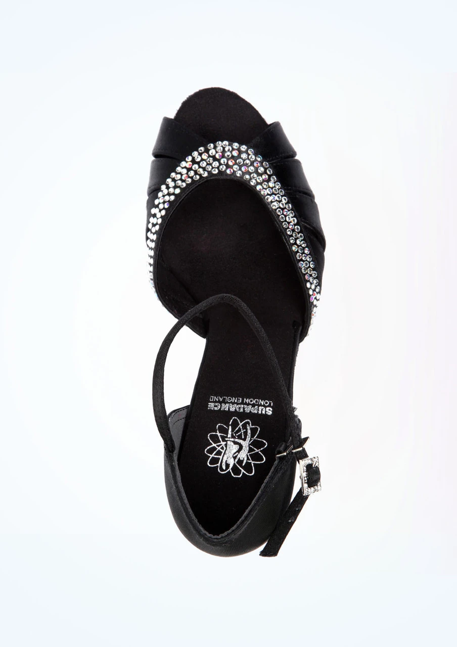 A new shoe from Supadance, this satin sandal has genuine Swarovski Crystal detail on the buckle and on the front of the shoe. It is rated as a regular fitting shoe and has 2.5” flare heel. Suitable for all styles of Ballroom, Latin and Salsa.