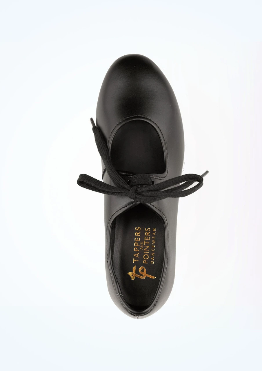 Tappers and Pointers black low 1” heel tap shoes are great for beginners. The recently revised design now suits wider feet too. (Heel taps sold separately).
