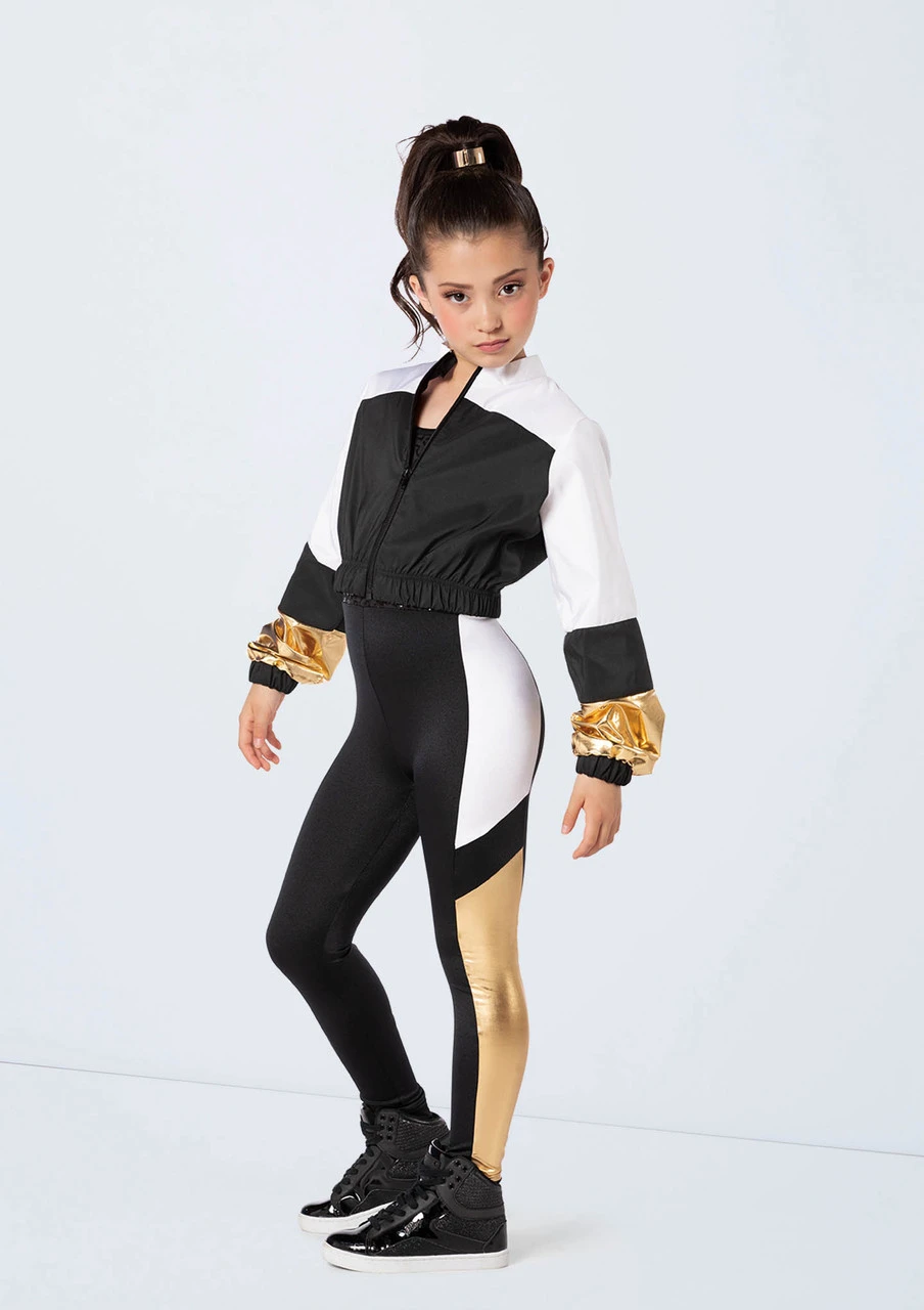 -Two piece, includes jacket and unitard