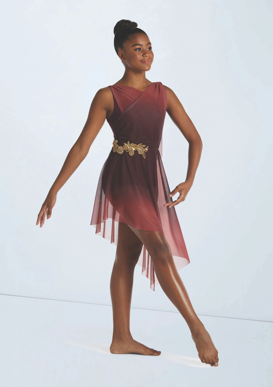 Ombré mesh dress with asymmetrical skirt