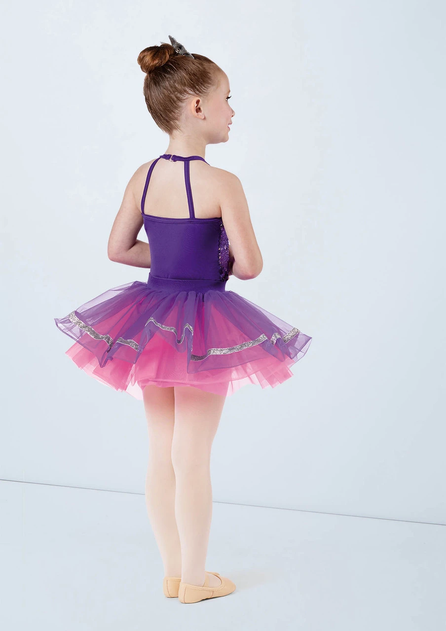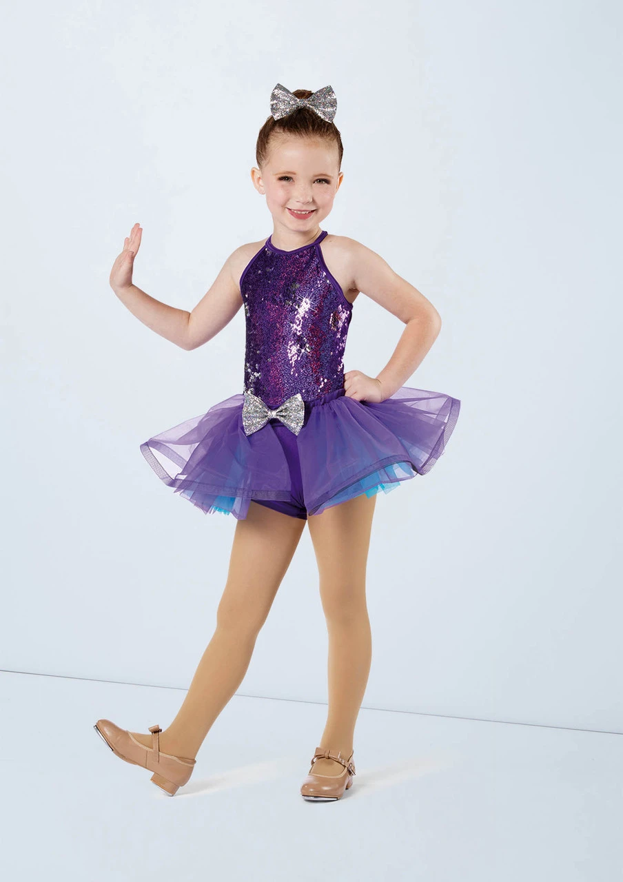 -Three piece costume includes biketard, tutu, and bustle skirt