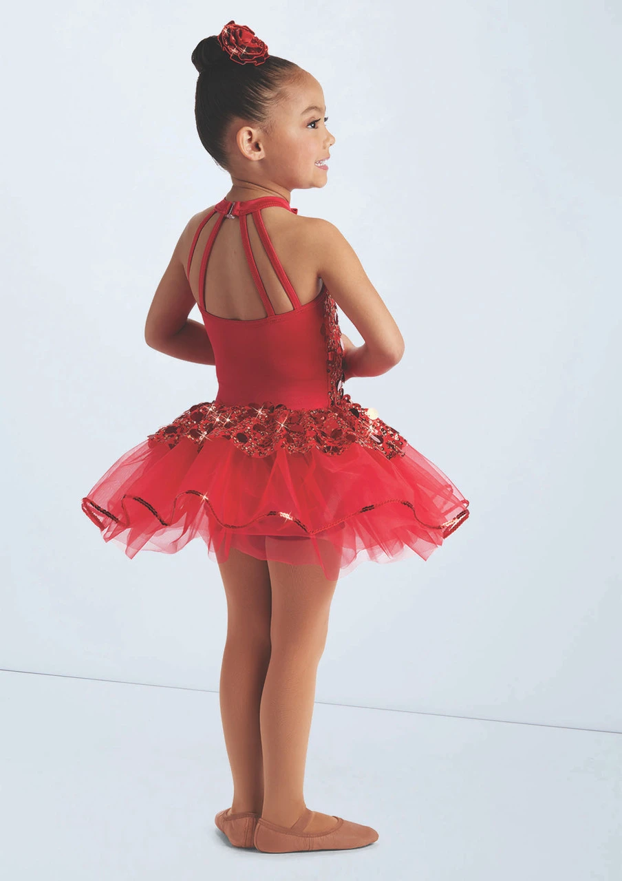 Pull-on tutu with glitter paillette over sequin trim tricot