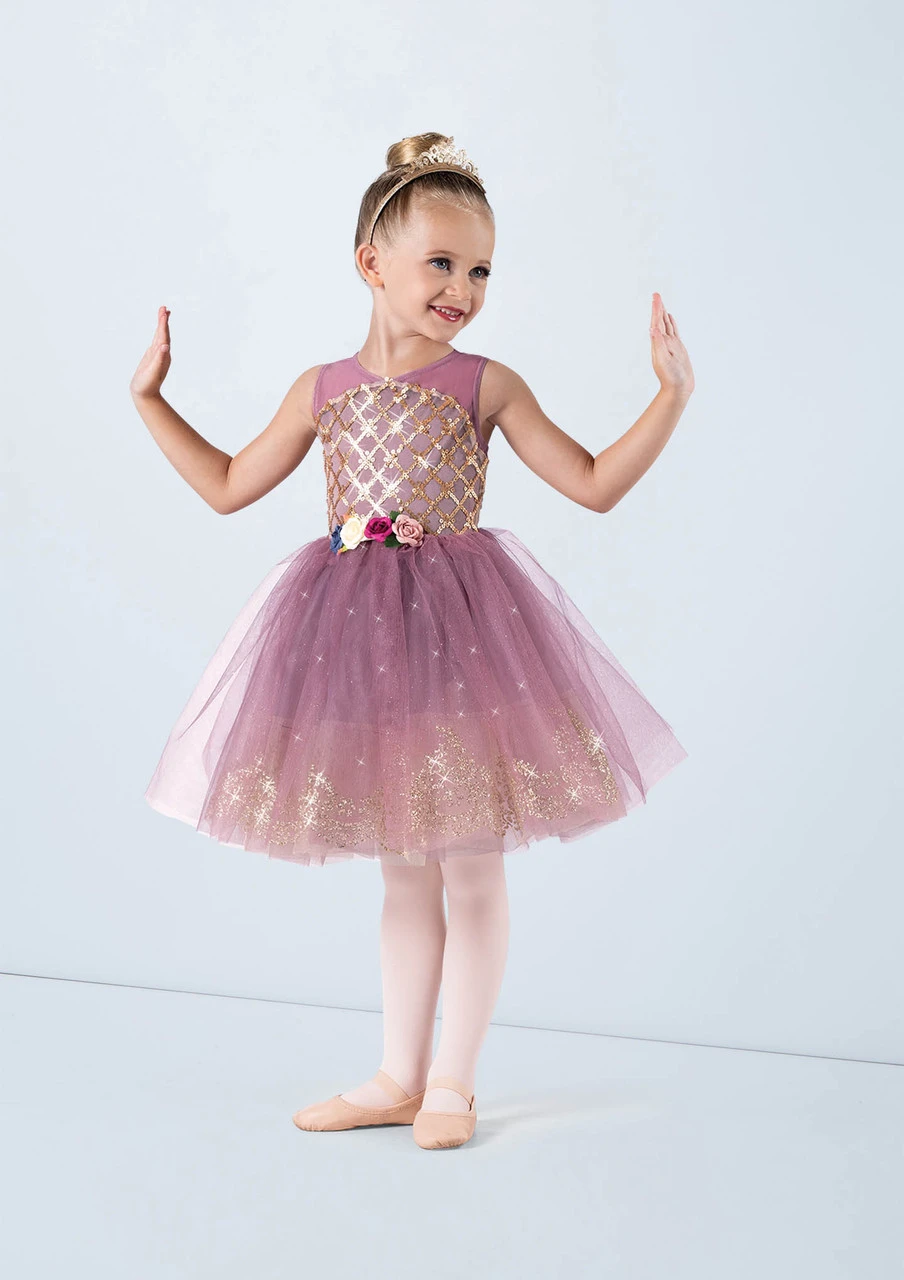 -Tutu is layered glitter mist tulle and tricot edged in glitter trim