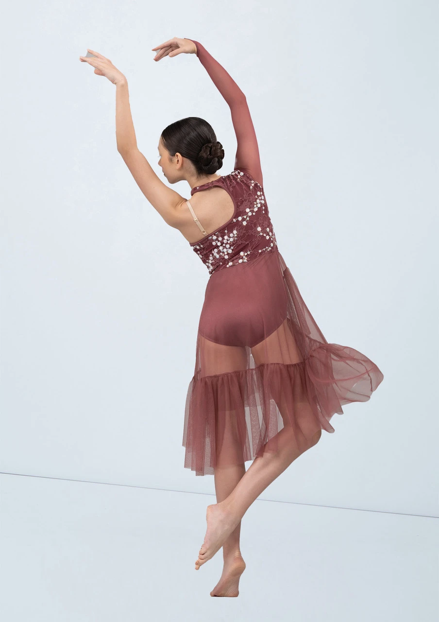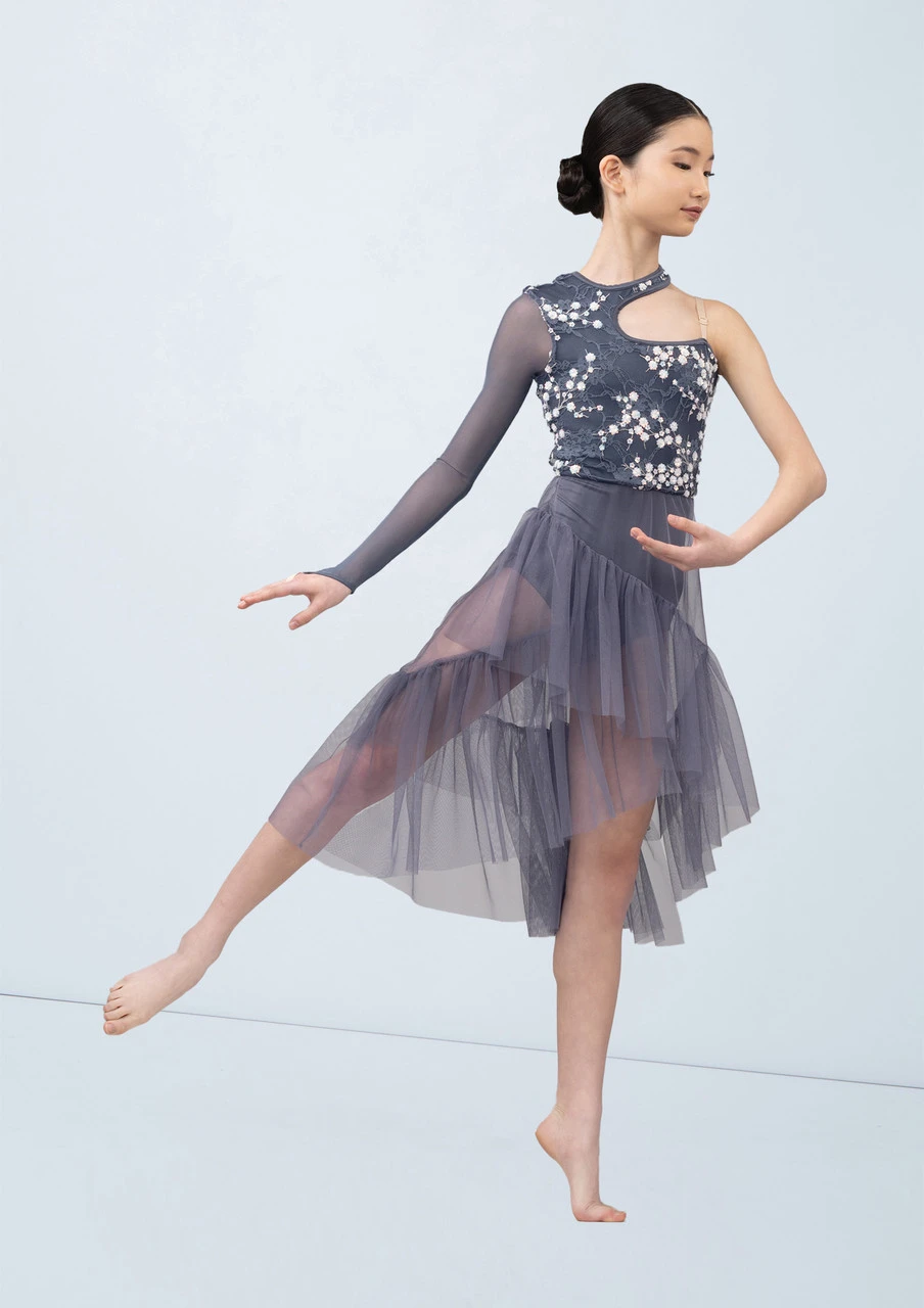 Asymmetric dress with power mesh point sleeve